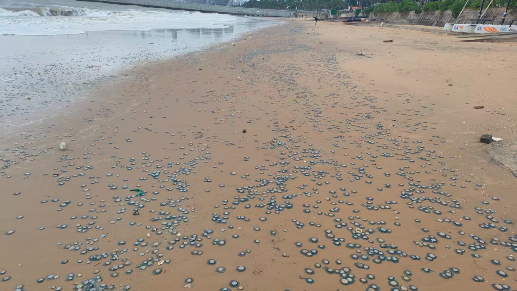 ?谖骱0冻霈F(xiàn)大量銀幣水母 專家:有毒,應(yīng)避免主動觸碰!